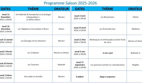 Durant l’année, des soirées à thème et des cours théoriques vous seront proposées pour vous permettre de mieux connaitre le milieu sous-marin.