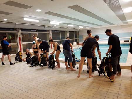 Cours sur le gréage du matériel au bord du bassin.